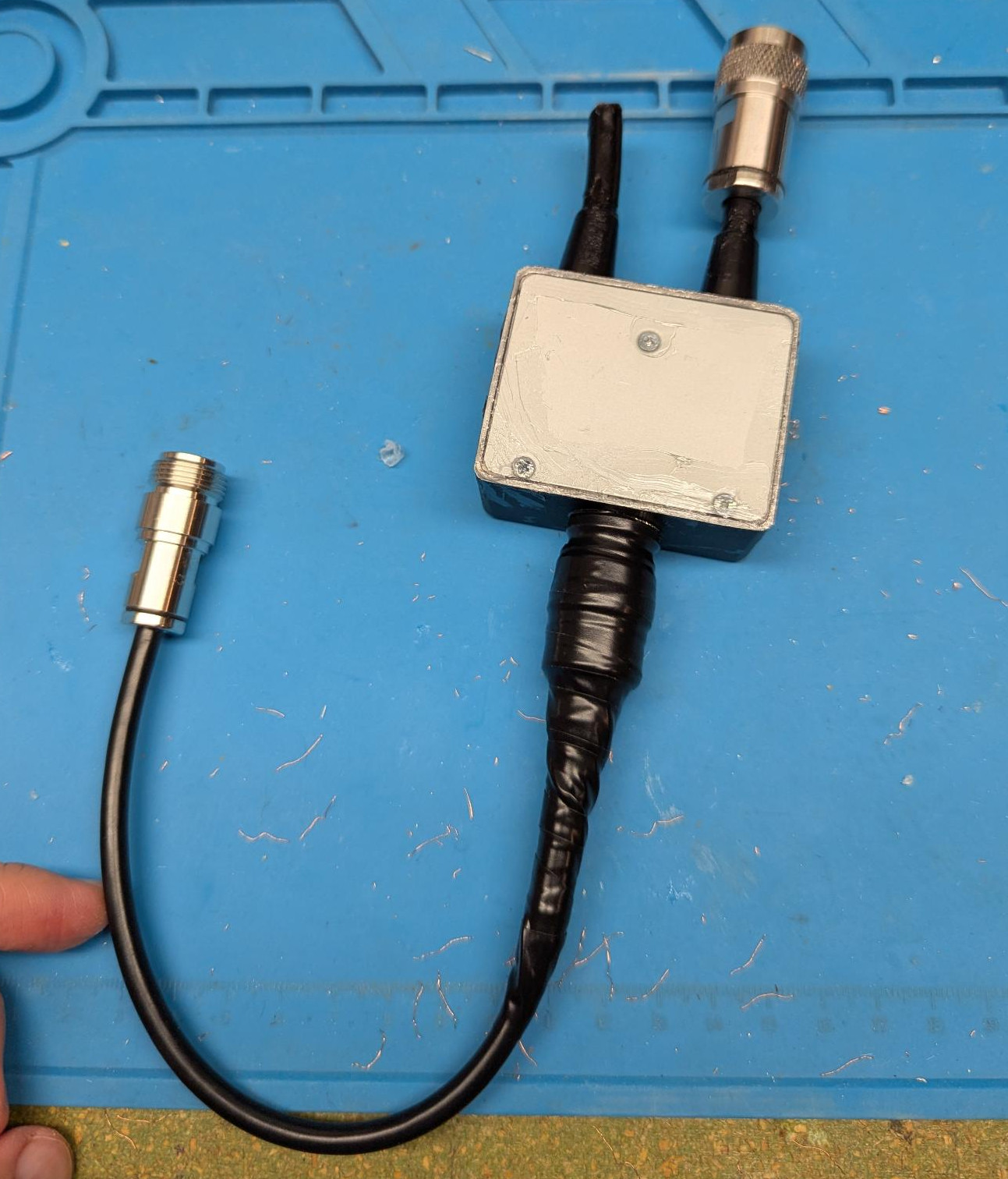 This post also explains how to fix this issue: By adding a diplexer between the 70cm preamp and the 70cm antenna. It should be installed so that the mix port of the diplexer is connected to the antenna and the 70cm port to the preamp. The diplexer will then act as a filter. You can of course also use a proper band pass or high pass filter but since I had a spare diplexer, I gave it a shot. The diplexer had BNC connecters which I needed for a previous project so I removed them and nstalled a new N connector to the 70cm port. To make it somewhat water proof, I sealed what I could with silicone: