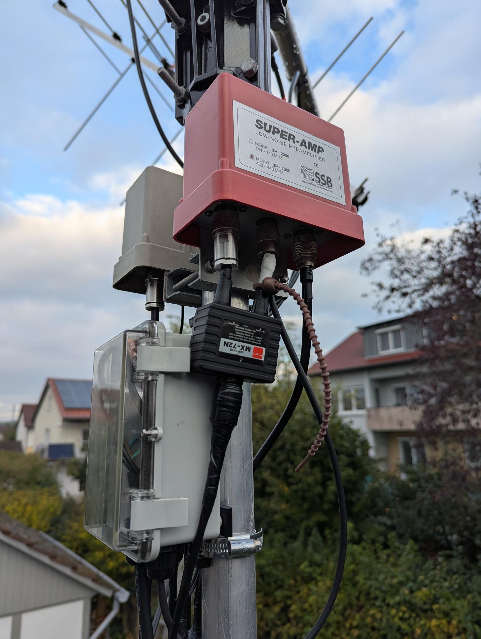 Posted on 2025-10-10 by DK1MII recently upgraded my satellite ground station from eggbeaters to cross yagis. Everything seemed fine, but at first I didn’t realize I had a problem. This manifested itself in the fact that I sometimes heard myself very distorted on satellites with linear transponders and couldn’t hear anything at all on FM satellites when transmitting. Since I couldn’t find a solution myself, I asked the International AMSAT Ops Telegram Group for help. There I first learned that this phenomenon is called “desense.” I would like to quote the very helpful page “A Simple Desense Filter for Mode-J Satellites” on amsat.org: “Desense is where your transmitter signal overloads your preamp (or receiver) causing it to become temporarily less sensitive. This overload condition may also be accompanied by white noise or intermodulation distortion where you hear distorted signals in your receiver, including possibly your own transmit signal, but only when you are transmitting.”