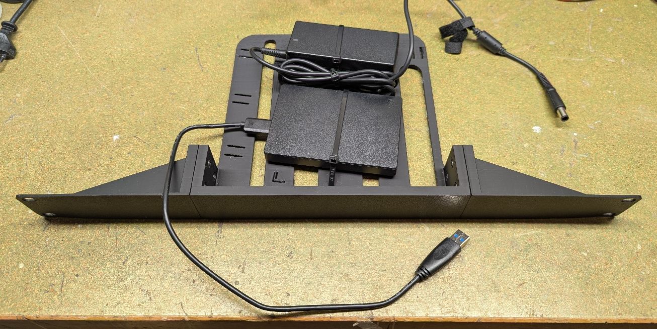 For use in a home lab, there is a module for the Wyse 5070 from the ESRack series by Printables.com user EvilProphet, which I can absolutely recommend. Currently, I have a 3040 running Pi-Hole and a USB drive connected to it for storage of my backups with BorgBackup in addition to a 5070 in the rack. I have also placed the drive together with the PSU on a module from the ESRack series.